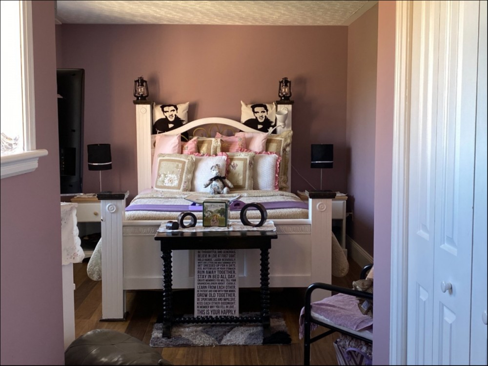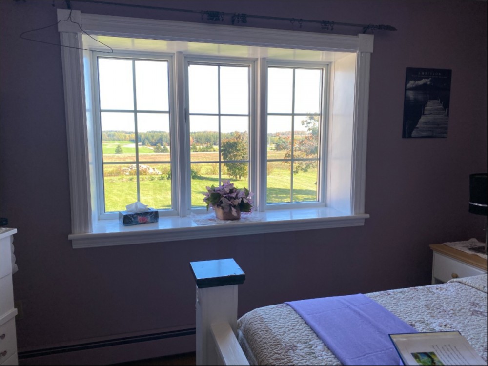 Home to a queen size 4 poster bed, you're sure to feel the lightness n peace of the country in both this room and in its view. We are sure you will agree there's no better view of the vast rolling island meadow then the one to be seen from the big beautiful bay window in this room. Designed with up to two in mind.